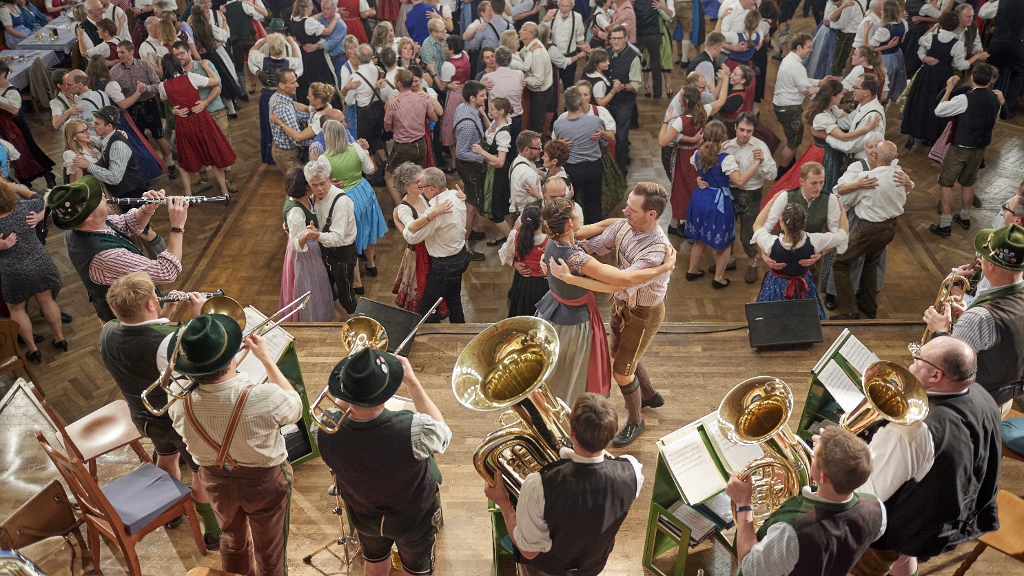 Dazu leiten Tanzmeister*innen verschiedene Tänze zum Mitmachen an, darunter die beliebte „Münchner Francaise“. Vorkenntnisse im Bairisch Tanzen sind nicht notwendig. Für alle, die vorab üben möchten, bieten wir im Vorfeld kostenlose Tanzkurse für Einsteiger*innen an.
